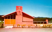 HistoryIn 1950 the little town in the redwoods - Felton, CA - had a population of about 1200 residents, including 38 Catholic families. The nearest church was in Santa Cruz. From 1929-38 they went to Masses held in the Felton home of retired Fr. P.D. Hassett. Masses were held during the summer months at campgrounds by priests from Alma College in Los Gatos. Beginning in 1947 Fr. John Nelson from St. Vincent de Paul in Davenport said Mass in the Felton Community Hall, the "church" for six years. In 1951 the Catholic families formed a committee for the purpose of building a church. Land was purchased in August 1951, and construction began in September. Parishioners pledged more funds, sought donated materials, and borrowed money from St. Patrick's in Watsonville. Benefactors included Catholic and non-Catholic friends of the parishioners. By 1955 the parish was out of debt. Irish-born Fr. William Lane arrived in March 1952 with the commission of finishing the church. The glorious Easter Sunday of April 5, 1953 was celebrated with St. John's first Mass in its brand new church, its altar surrounded with white flowers. In 1955 Fr. Lane transferred to Pacific Grove, to be replaced by Fr. Edward Haskins. Fr. Haskins saw significant growth in the parish, and established the Newman Club for high school students. He was forced to resign in 1963, due to poor health. Fr. Patrick McHugh (also Irish-born) arrived in 1963. During his tenure meetings and religious education classes continued to be held in the homes of parishioners, but it soon became obvious that St. John's needed more space. He oversaw the purchase of land adjoining the church in 1969, and the hall was built soon after. Fr. McHugh died of a heart attack in the rectory in March 1979. Msgr. John Kennedy (the third Irish-born pastor) arrived to spend 17 years-the longest of all pastoral tenures. He put on no airs about the use of his clerical rank, preferring to be called "Father" Kennedy, and protested the naming of the garden behind the rectory as "Kennedy Pavilion". He retired in 1996 and moved to a house in Felton. He died in 2002 and is buried in the Felton Cemetery, just up the hill. Msgr. Kennedy was pastor during 1982, when the San Lorenzo River overran its banks and caused devastation in the valley. He turned the hall over to the American Red Cross for use as a shelter. Msgr. Kennedy was also pastor during the 1989 Loma Prieta earthquake, which damaged the facade of the church. He commissioned local artist Cliff Short to create a 16-foot redwood cross etched with vines, 12 grape clusters, and the eagle symbol of St. John the Evangelist, for the front of the building. When Fr. Michael Cross arrived in 1996, Msgr. Kennedy told him the little parish in the redwoods would "grow on him like moss". As part of the 50th Anniversary celebration in 2002, Fr. Cross commissioned Cliff Short to create a new altar, ambo, and tabernacle base, all in redwood. To better show off the Crucifix behind the altar, light-colored stonework was applied to the wall. A new sand colored carpet spreads along the aisles and under the ranks of freshly polished pews where, down five decades, sat so many of the now departed parishioners who helped realize the dream of turning a corner vacant lot into a House of Worship. |