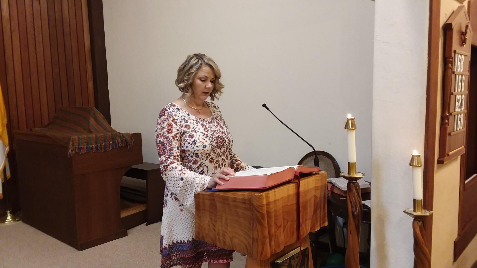 Suzi Brown reads from scripture and is recorded and