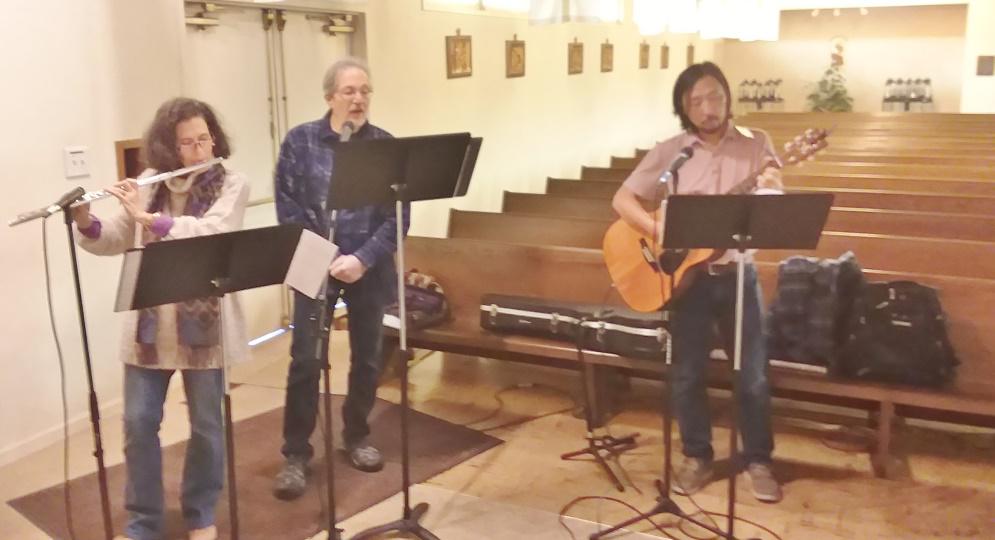 Laura Dallas on flute, Dale Dallas sings and Peter Kim